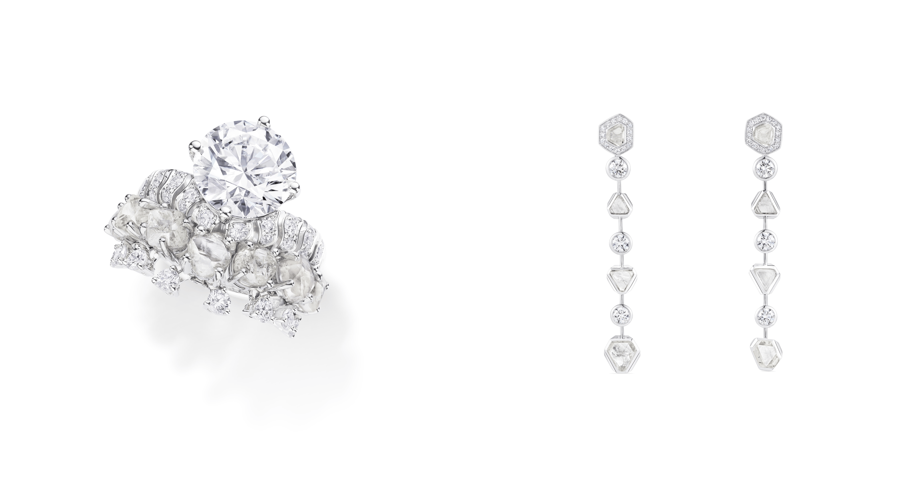本次发布的胶囊珠宝系列作品,将这一责任之旅转化为可佩戴的艺术。系列作品均采用来自GemFair项目的钻石,巧妙组合未经雕琢的钻石原石与抛光美钻,生动诠释“蜕变”主题,礼赞品牌与钻石开采地的深厚连结。每一颗历经自然、水流磅礴之力塑就的原钻,皆因其卓越的纯净度与明亮度而被手工甄选;抛光钻石则由匠人手工雕琢,与保留天然原貌的原石相映成趣,既彰显大地的原始之美,亦奏响自然与人类匠艺的对话。GemFair更成为戴比尔斯品牌珠宝系列的注册供应商,标志着GemFair的钻石在品质与责任采购方面已达到高级珠宝的严苛标准,为连接非凡钻石和它们的发掘者与最终佩戴者迈出了关键一步。