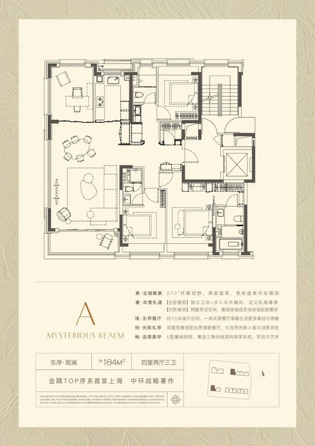 金隅公园东序此次首开户型分为两档,其一是建面约184㎡的四房大户型,来看具体分析: