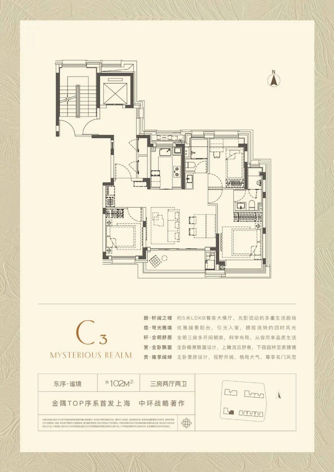 首先,百平3房能有一梯一户的私密与尊崇,已然超越了市面上绝大多数三房的标准。